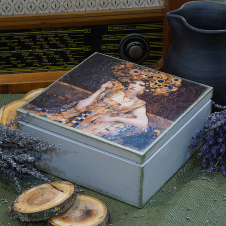 Ręcznie zdobiona metodą decupage drewniana skrzynka