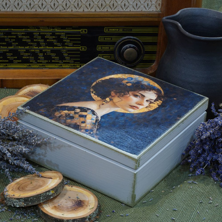 Ręcznie zdobiona metodą decupage drewniana skrzynka